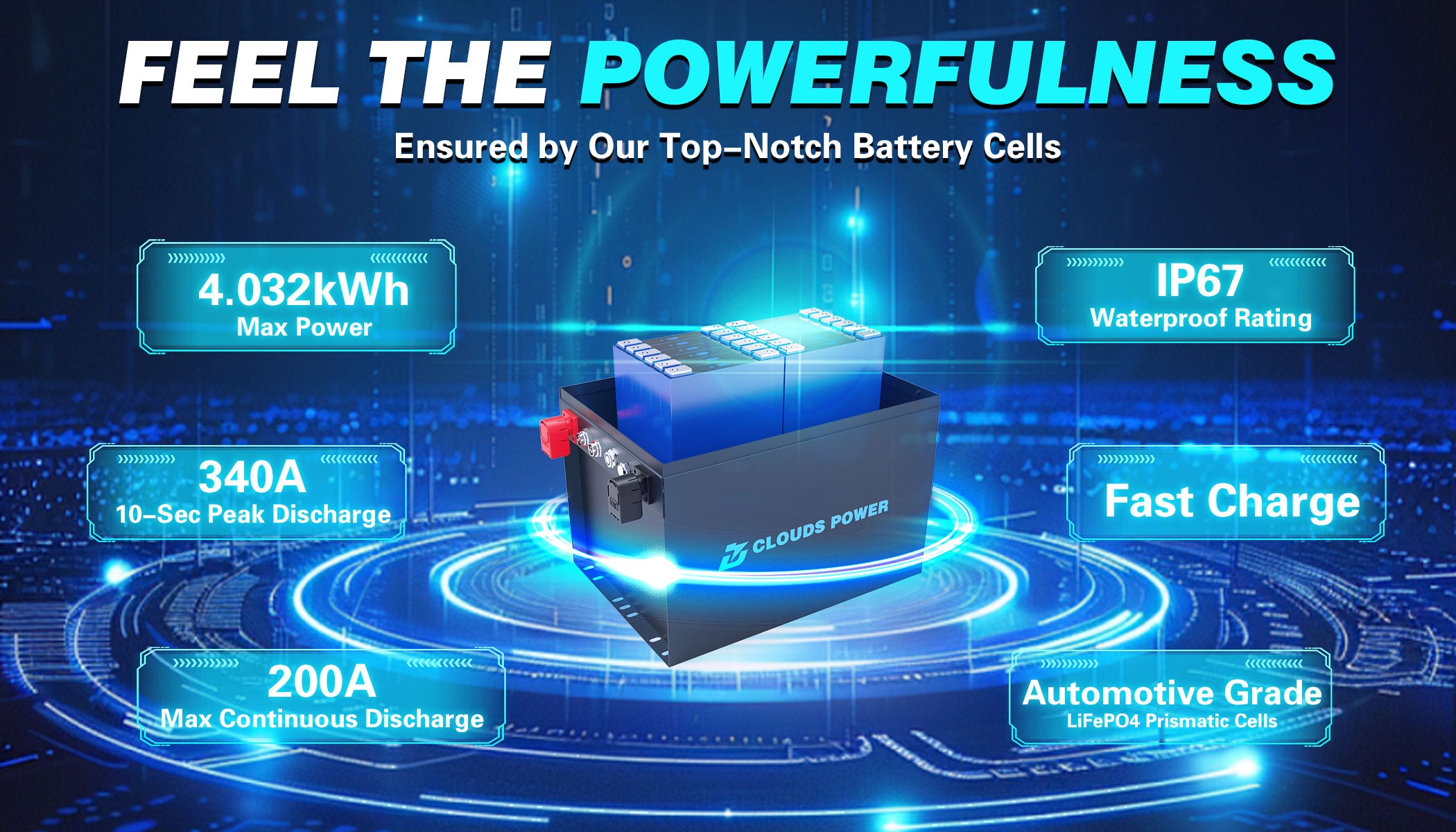 Clouds Power LiFePO4 batteries: The perfect power solution for golf carts that combines great quality with durability & sustainability. Designed with eco-friendly technology, our batteries not only ensure long-lasting performance but also come with a generous 5-year warranty with full replacement, adding on a 5-year prorated warranty, providing peace of mind for your investment.